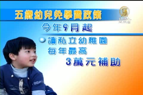 【新唐人亞太台2010年8月25日訊】馬總統在競選時所提出的「5歲幼兒免費入學」政策,確定將可實現上路。教育部和內政部今天(25日)共同舉行記者會,宣布從今年9月開始,離島和原住民鄉鎮的5歲以下幼兒,可以免費就讀公立幼稚園;明年開始還擴大到全台灣,只要家戶年所得在新台幣110萬元以下,那麼家裡五歲以下的小朋友,就可以免費入學。