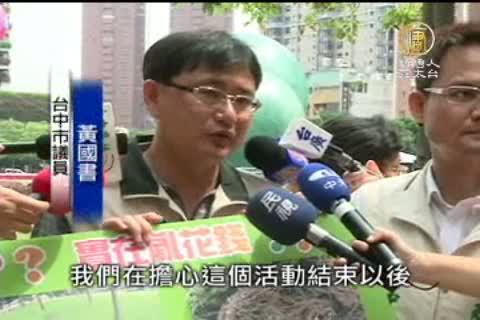 【新唐人亞太台2010年8月25日訊】「2010台中國際花毯節」將在市民廣場及經國綠園道正式展開,長100公尺、寬60公尺,總共動用近30萬盆花草,9天的活動,共花費新台幣1300萬元。台中市議員質疑,台中八月天氣高溫,盆花的季節也不對,實在是亂花錢。