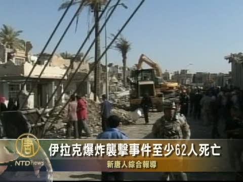 【新唐人2010年8月26日訊】星期三,伊拉克各地發生一系列汽車炸彈爆炸事件,造成至少62人死亡,超過250人受傷。 大部分爆炸襲擊都是針對伊拉克安全部隊。