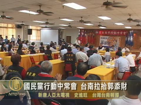 【新唐人2010年8月26日訊】國民黨行動中常會25日下午開拔到臺南市,主席馬英九領軍為國民黨大臺南市長提名人郭添財造勢,郭添財提出「守護大臺南、旺來大臺南」的翻盤戰略,希望塑造大團結,贏回藍營執政權。