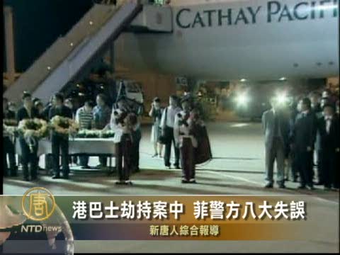 【新唐人2010年8月26日訊】隨著香港巴士劫持案細節的逐漸曝光,星期三(8月25號),媒體總結了菲律賓警方在案件處理中的八大失誤,稱菲警方最後耗時79分鐘的突擊救援是“世界最長的營救突擊”。這場星期一(8月23號)發生的血腥之災,導致8名香港人死亡,7人受傷,其中2人重傷。