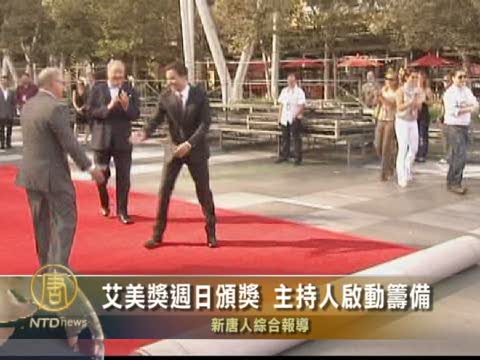 【新唐人2010年8月26日訊】第62屆艾美獎頒獎典禮即將在本週日(8月29號)在洛杉磯舉行,星期三(8月25號),頒獎典禮主持、著名脫口秀主持人吉米•法隆(Jimmy Fallon)捲開了紅地毯,正式啟動頒獎典禮的籌備工作。