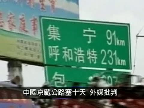 中國京藏高速公路因北京段施工而引發的大塞車,如今已進入第十天,車陣從北京蜿蜒至百公里外的內蒙古,嚴重時車行一天不到一公里,包括英國衛報、每日電訊報等媒體,都稱這是全世界最糟糕的塞車。