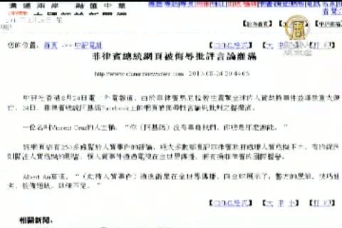 【新唐人亞太台2010年8月26日訊】香港康泰旅行社巴士在菲律賓遭劫持事件,最後以血腥結局收場,造成8名港人魂斷異鄉。從菲律賓警方的處置過程和事發後菲國總統現身媒體前的微笑表情,都讓各界批評聲浪不斷,中國政府要求菲國政府對這起事件給交代。但中共中宣部在24日卻發出通知,要求媒體正面報導,不要將這件事與中菲關係掛鉤,引發網友不滿評論。