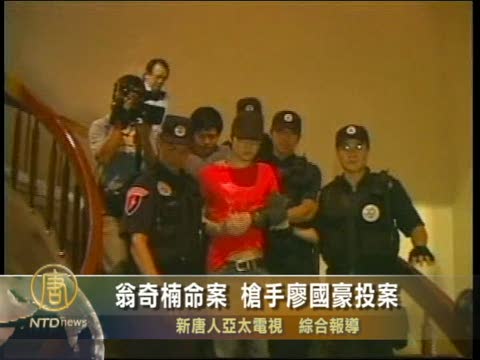 【新唐人2010年8月27日訊】臺中角頭翁奇楠命案爆發近3個月,年僅18歲的槍手廖國豪,在25日晚間透過立委周守訓,向警方投案。由於翁奇楠命案的主使者楊定融、車手及策劃嫌犯一一落網,廖國豪可能自知沒有後路,才主動向警方投案。