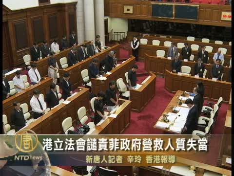 【新唐人2010年8月27日訊】香港立法會一個委員會星期四召開特別會議,討論菲律賓挾持慘案。各黨派一致通過動議,譴責菲律賓政府在拯救人質行動中處理嚴重失當,要求向死傷者家屬道歉及賠償。