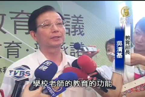 教育部長吳清基:「一個孩子的行為偏差呢,是種因於家庭、顯現於學校、惡化於社會。家庭父母的親職教育、學校老師的教育的功能、跟社會給他的一個社會環境、這三者都要負起責任。」「教育呢,愛是無限的,老師辛苦我們非常感激,教育絕不能拒絕任何一個孩子。」