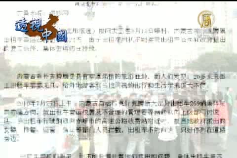 【新唐人亞太台2010年8月28日訊】中國內蒙古克什克騰旗出租車司機因不滿當地出租車公司壟斷經營權,收取高額的費用,7月25日集體到政府部門請願途中遭攔截,在沒有得到滿意的答覆下,269輛出租車已經集體罷運一個月。