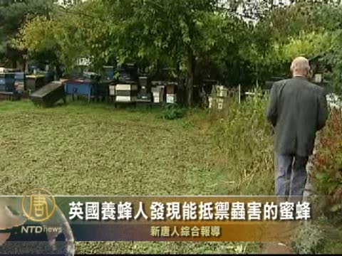【新唐人2010年8月29日訊】自從蜂蟎侵入英國以來,已成為蜜蜂的最大殺手。近日,來自英格蘭南部斯溫頓的養蜂人羅恩•霍斯金斯(Ron Hoskins)說,他可能已經發現了一種對寄生蟲蜂蟎(Varroa mite)具有天然抵禦能力的蜜蜂品種。