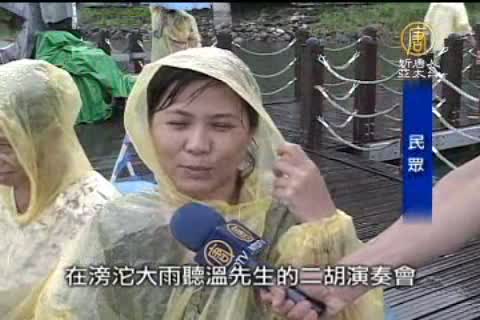 民眾:「我第一次有這種經驗坐在湖水上面棧板上,在滂沱大雨聽溫先生的二胡演奏會,真的別有一番風情。」