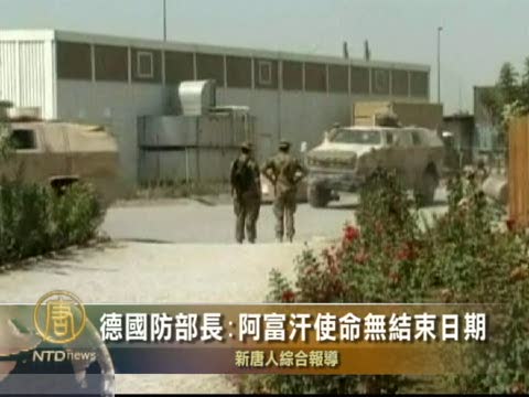 【新唐人2010年8月30日訊】德國國防部長古籐貝格週日(8月29日)看望了阿富汗北部昆都士省激戰地區的德國士兵。他說,德軍在阿富汗的使命沒有結束的日期。