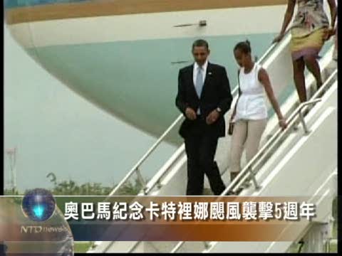【新唐人2010年8月30日訊】美國總統奥巴馬週日在路易斯安那州的新奧爾良,紀念5年前卡特里娜颶風中的遇難者。他會晤了州官員,當晚還將在澤維爾大學發表講話。預計奥巴馬將關注新奧爾良的重建和墨西哥海岸在颶風襲擊後的重建,以及墨西哥灣漏油事故等。