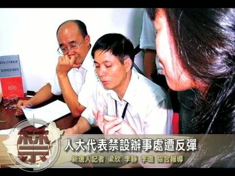 【新唐人2010年8月30日訊】最近,實施了18年的中國人大「代表法」首次修正,規定人大代表不得設“個人工作室”(辦事處)。深圳市人大代表楊劍昌向當地媒體宣佈,他開設5年的人大代表接訪室將從下月起撤銷。中共當局的這個做法被指是對人大代表的權力限制。