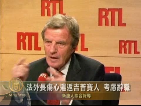 【新唐人2010年8月31日訊】法國外交部長庫什內爾30日,接受法國電臺採訪時,談到具有爭議的、政府打擊吉普賽人營地,並遣返吉普賽人的活動時,他表示為此感到不安和傷心,考慮辭職。