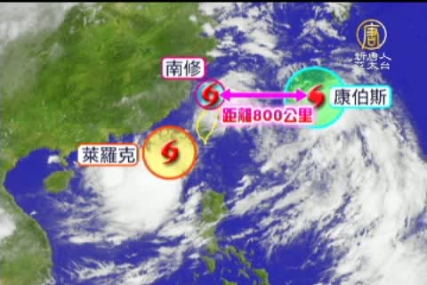 【新唐人亞太台2010年8月31日訊】這次出現所謂三颱環繞台灣,甚至其中「南修」跟「萊羅克」可能南北夾擊台灣,雖然過去也同時三颱成形,但當時的颱風都離台灣還有點距離,相對這次三個颱風都離台灣超級近,氣象專家就預估,可能會出現藤原加藤原的雙重牽引效應,路徑特別多變。