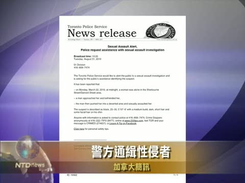根據警方的描述,案犯年齡在 25至35歲之間,身高6尺左右,臉上有黑色鬍鬚。警方一方面呼籲女士們夜間出行時小心,另一方面希望目擊者提供嫌疑人信息,電話:416 808-7474﹔或匿名致電滅罪熱線:416-222-8477。