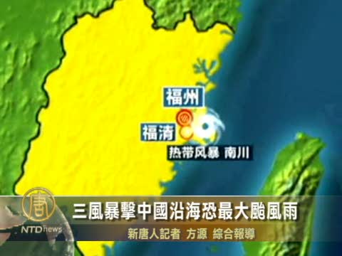 【新唐人2010年9月1日訊】受颱風“圓規”、熱帶風暴“獅子山”和“南川”的共同影響,中國東南沿海將迎來今年最大範圍颱風雨。中國防總已啟動4級應急防颱風警報。由於三股風暴力量互相牽制,未來路徑不定。