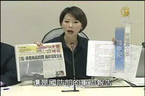 「國防部的軍力報告,打了馬英九一個大巴掌,這是你說假話,還是國防部的軍力報告,有所錯誤啊。」