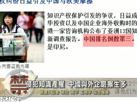 【新唐人2010年9月1日訊】中國的一些侵犯知識產權的活動,已經從街頭小攤販和家庭作坊轉入更隱蔽的生產部門,媒體報導認為,中國在知識產權保護方面引發的爭議,越來越成為外國企業對華投資,以及中國企業海外收購時的主要障礙。