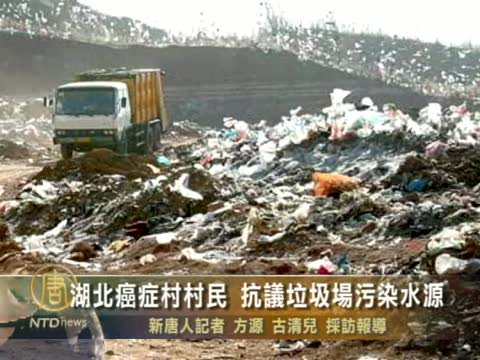 【新唐人2010年9月2日訊】湖北通山縣涼亭嶺垃圾場附近的衢潭村村民,從8月9號開始圍堵通往垃圾場的道路,由於村民懷疑該垃圾場流出的污水污染了水源,導致該村居民不斷罹患癌症﹔村民表示,近期已經採集井水送檢,等報告出來將會決定下一步行動。