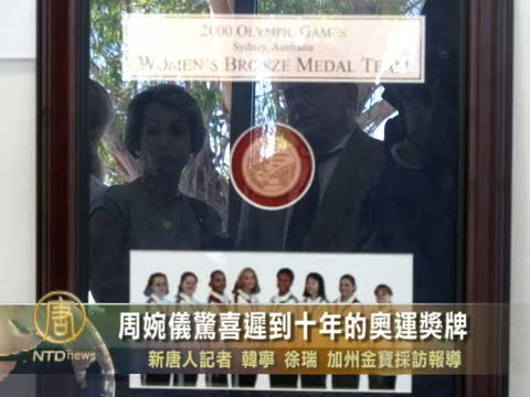【新唐人2010年9月2日訊】曾經代表美國女子體操隊,參加過兩屆奧運會,獲得一金一銀的華裔周婉儀,在二OOO年悉尼奧運會上獲得團體第四名,但是國際奧委會今年四月宣佈,由於中國體操隊隊員董芳霄在二OOO年悉尼奧運會時的真實年齡低於法定年齡,從而取消了中國隊當年所獲得的團體銅牌,這讓美國女子體操隊從第四晉升到第三名,周婉儀也喜獲一枚銅牌。