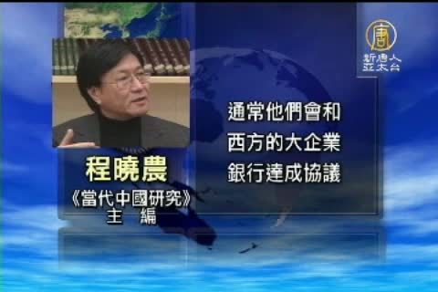 《當代中國研究》主編 程曉農:「中國的很多上市公司在海外上市的時候,通常他們會和西方的大企業、銀行達成協定,就是允許這些企業持股了以後,在鎖定時間後允許出售。」
