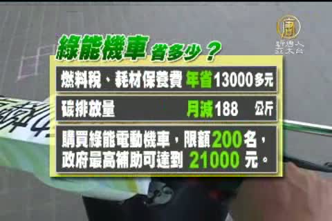 【新唐人亞太台2010年9月2日訊】台南市政府推廣綠能車輛,提高電動機車補助金額、劃設綠能汽機車優先停車格來鼓勵民眾購買綠能車輛。