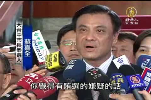 【新唐人亞太台2010年9月2日訊】民進黨大台中市長參選人蘇嘉全,上個月5號捐贈西苑高中青棒隊2萬元加菜金,遭檢方認定有賄選嫌疑,並約談球隊教練黃武雄。蘇嘉全今天(2號)上午表示,希望檢調單位直接約談他,不要為難選手及教練。