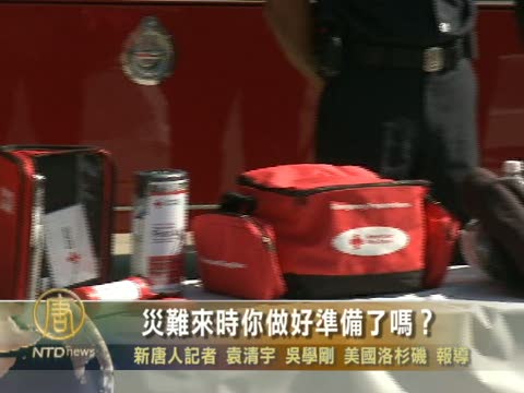 【新唐人2010年9月3日訊】水災、風災、地震、龍捲風,天災人禍,不知何時何地會發生,難以預測,防不勝防,9月是美國全國準備月﹙National Preparedness Month﹚,1日紅十字會、ABC7電視臺、,Kidde公司, Home Depot、洛杉磯消防和公共衛生部門在消防隊總部共同呼籲民眾做好萬全準備,災難來時,減少損失、救人一命。