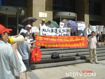 【新唐人2010年9月3日訊】(新唐人記者趙子法綜合報導)持續了四個多月的上海經租房主在市政府前討房活動,經本台及海外媒體多次報導,政府的對應在9月1日有了新的變化:國家安全局派人到現場拍照經租房主們抗議活動的錄像,在場公安還曾一度搶走了討房隊的相機。
