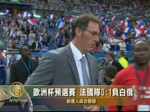 【新唐人2010年9月4日訊】曾經叱咤全球的法國足球隊,星期五(9月3號)再遇滑鐵盧。在2012歐洲盃預選賽D組首輪比賽中,法國隊以0:1輸給白俄羅斯隊。