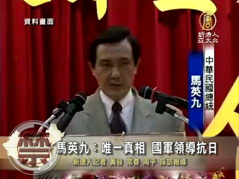 【新唐人2010年9月6日訊】中共官媒《人民日報》9月3號發表社論說,中國戰勝日本的最根本原因,是中共領導和推動抗戰。身兼國民黨主席的中華民國總統馬英九4號通過發言人反駁說,對日抗戰是在民國政府的領導下獲得的最後勝利,這是“唯一的歷史真相”。