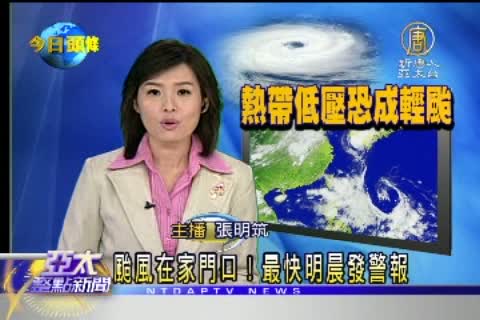 【新唐人亞太台2010年9月6日訊】新聞一開始我們要提醒你,可能又有新的颱風要來了。氣象局表示:在台灣東南東方海面上的熱低氣壓,最快明天清晨就會發展成颱風。由於它距離台灣很近,所以一旦形成颱風,就可能同時發佈海上、陸上颱風警報。提醒民眾可別輕忽這個熱低壓,尤其南部八八災區更要嚴加戒備,盡快作好防颱工作。