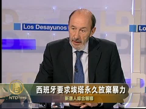 【新唐人2010年9月6日訊】西班牙分離主義組織“埃塔”(ETA)5日宣佈停火。西班牙內政部長盧巴卡巴(Alfredo Perez Rubalcaba)6日對此回應說,埃塔宣佈停火是“不夠的”,西班牙對此持懷疑態度,警方仍將堅決對其進行打擊。