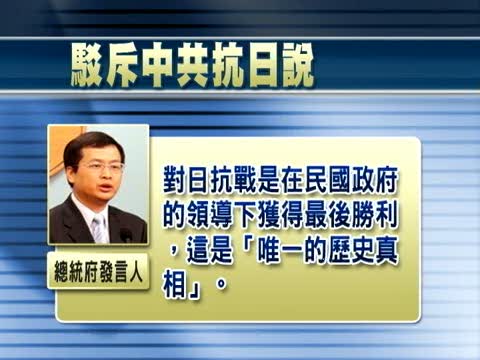 針對中共的抗日說,中華民國總統府駁斥,強調對日抗戰是在民國政府的領導下獲得最後勝利,這是「唯一的歷史真相」。