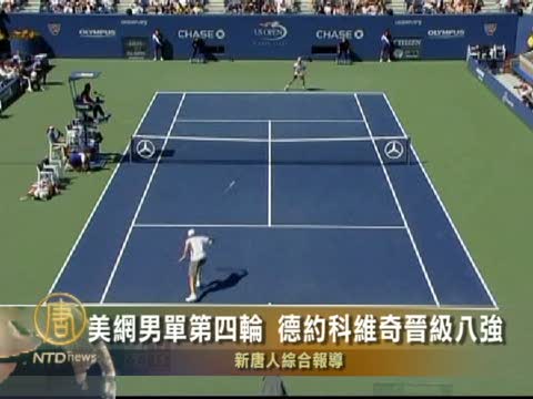 【新唐人2010年9月7日訊】賽爾維亞3號種子德約科維奇(Djokovic),在星期一(九月六日)進行的2010年美國網球公開賽男單第四輪比賽中,狀態出色,最終直落三盤,以6-3、6-4和6-1輕鬆擊敗美國“大魚”費甚(Mardy Fish),成功晉級八強。