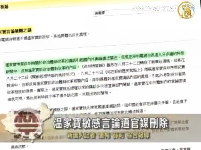 【新唐人2010年9月7日訊】今日點擊(848)溫家寶敏感言論遭官媒刪除