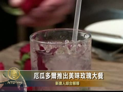 【新唐人2010年9月8日訊】玫瑰花是浪漫愛情的像征,也可以用來表達親友之間濃濃的情誼。而在厄瓜多爾,有機玫瑰花瓣做成的大餐,正吸引著來自全球的遊客。