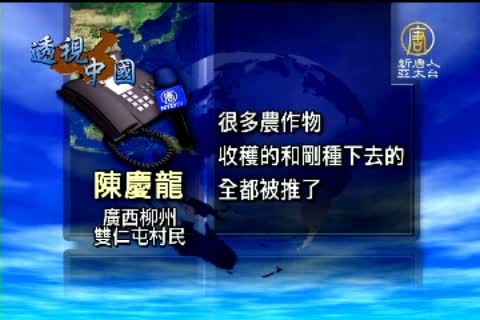 據村民介紹,柳州市政府計畫在柳東新區和雒容鎮,圈佔上萬畝耕地進行商業開發,然而,據國土廳回覆,計畫圈佔的地塊不曾經過報批和批准手續;對於市政府的野蠻、違法行為,村民賴鳳年哭著說,不知道要到哪裡去伸冤。