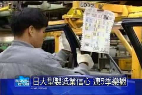 日本政府發布最新的統計數據顯示,資本超過10億日圓的大型製造業第三季信心指數為13.3,高於第二季的10,為連續第5季出現樂觀數字,顯示對於景氣抱持樂觀的大型企業信心,有逐漸增強的趨勢。