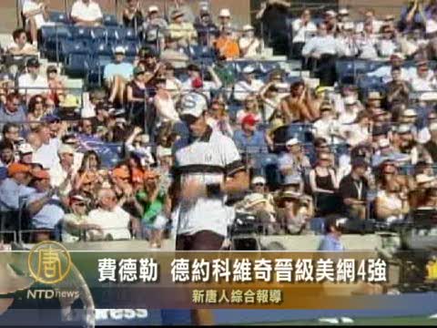 【新唐人2010年9月9日訊】瑞士網球天王費德勒和賽爾維亞好手德約科維奇在美國網球公開賽第10天的比賽中,雙雙擊敗對手,成功晉級美網男單4強,雙方將在12號交手,爭奪冠軍決賽資格。