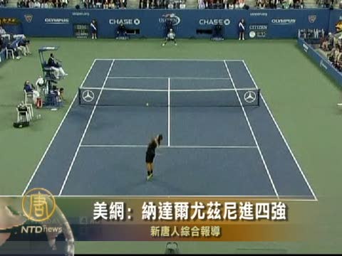 【新唐人2010年9月10日訊】在星期四美國網球公開賽男單1/4決賽中,賽會頭號種子納達爾和賽會12種子、俄羅斯名將尤茲尼各自擊敗對手,闖進四強。