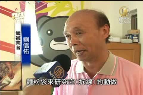 織襪業者 劉信佑:「去找買一些麵粉,麵粉袋來研究它(拆線)的動做,那個程式然後,才把它分析後,才用機器,費盡精神,才去把它研發,現在給消費者可以一條線拉起來就好了,這個已經很實用 。 」