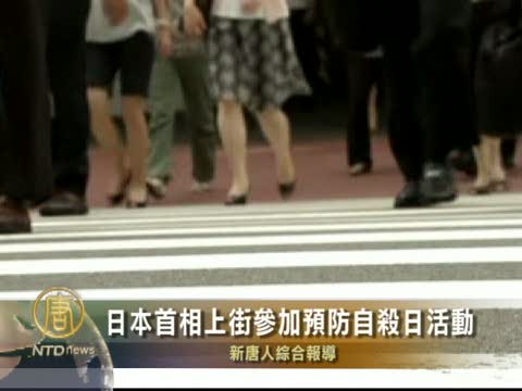 【新唐人2010年9月11日訊】9月10日是世界衛生組織(WHO)指定的「世界自殺預防日」,也是日本國內「自殺預防周」的開始。日本首相菅直人及三位內閣大臣於當天走上街頭,呼籲人們重視對自殺的預防。自殺是日本的一大社會問題,去年日本有3萬2千人自殺,因為自殺和抑鬱症,日本每年經濟損失大約320億美元。