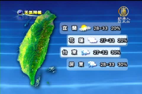 【新唐人亞太台2010年9月11日訊】來關心天氣。台灣今天上午晴朗炎熱,午後熱對流旺盛,中央氣象局表示,明天12日,東南部地區有短暫陣雨,北部及中南部地區午後有短暫雷陣雨,其他地區則為多雲到晴的天氣。以下帶您關心9月12號星期天,全台各地以及世界各主要城市的天氣預報。