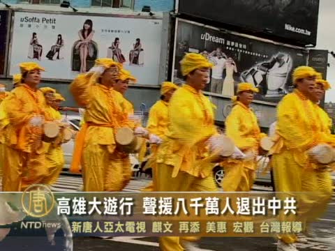 【新唐人2010年9月13日訊】12號下午南台灣各縣市的法輪功學員2000多人,聚集高雄市中央公園,聲援8000萬華人退出中共,數十位各界貴賓到場支持,隨後的大遊行繞經新掘江商圈,吸引逛街民眾圍觀,請看下面的報導。