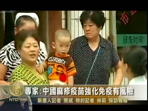 【新唐人2010年9月13日訊】中國11日起連續10天為1億名8個月至14歲大的兒童免費接種麻疹疫苗,大陸疫苗專家表示,大規模的強化免疫活動,有一定的風險,嚴重的會出人命。