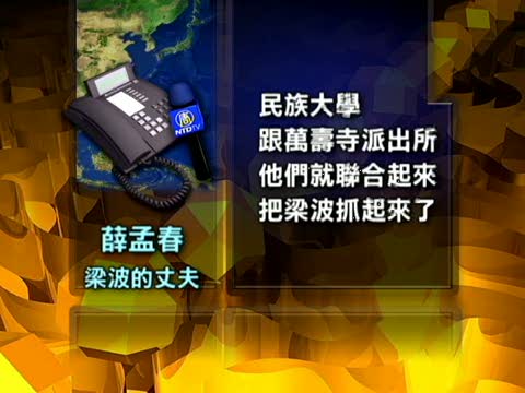 梁波的丈夫薛孟春:“民族大學跟萬壽寺派出所,他們就聯合起來把人抓起來了。他們在監所裏把梁波帶上手銬和腳鐐,把她手腳按住以後,讓男的兩百多斤的犯人,在肚子上坐一個多小時, 梁波當時就已經窒息了、休克。”