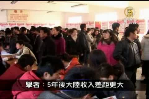 大陸著名經濟學者、中國國民經濟研究所所長樊綱近日預測,5年後大陸國民收入差距將越來越大,而且收入差距拉大趨勢將持續很長時間,至少在未來5至10年內不會逆轉。