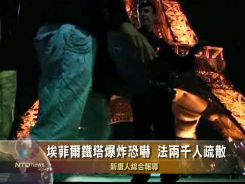 【新唐人2010年9月15日訊】星期二(9月14號)晚9點左右,法國巴黎埃菲爾鐵塔收到炸彈恐嚇,警方立即把當時正在參觀的約2千名遊客,疏散到塞納河畔,隨後關閉了埃菲爾鐵塔,並帶著警犬,進行搜索。